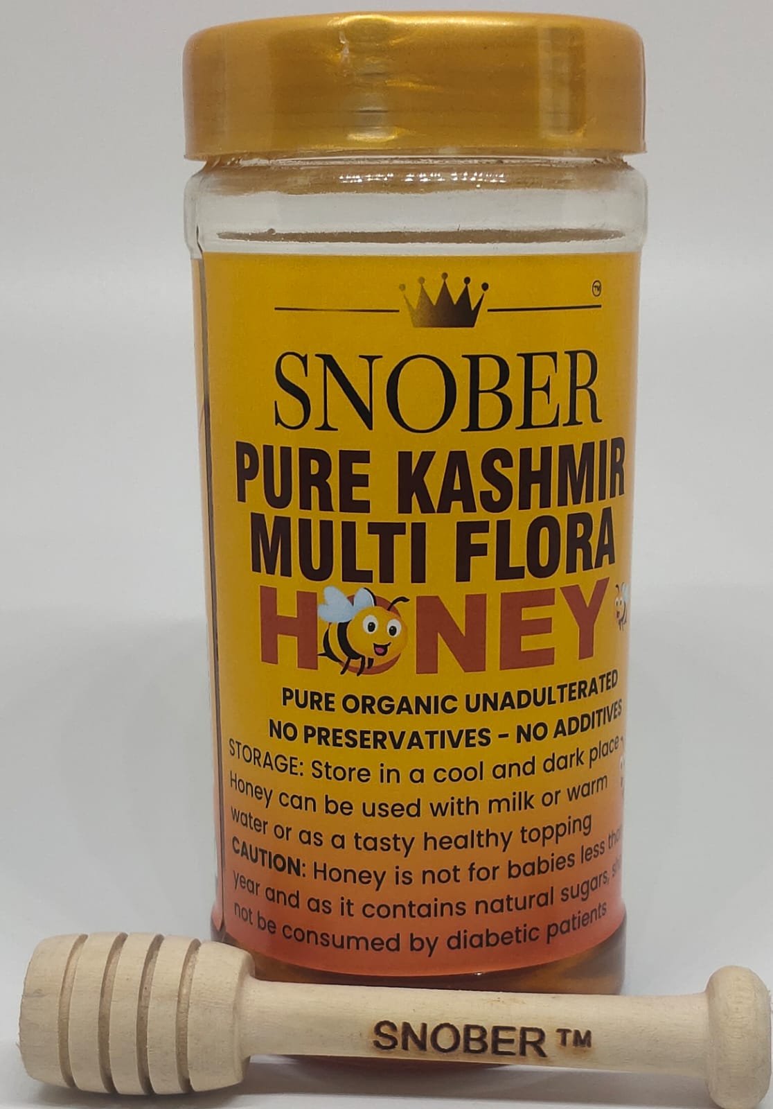 Each spoonful of Snober’s multiflora honey carries the nectar of hundreds of blossoms – from acacia to clover, wild herbs, and medicinal flowers native to Kashmir’s lush ecosystem. This unique combination gives it a rich golden hue, smooth texture, and a delightful floral sweetness that makes it one of the best Kashmir organic honeys available today.