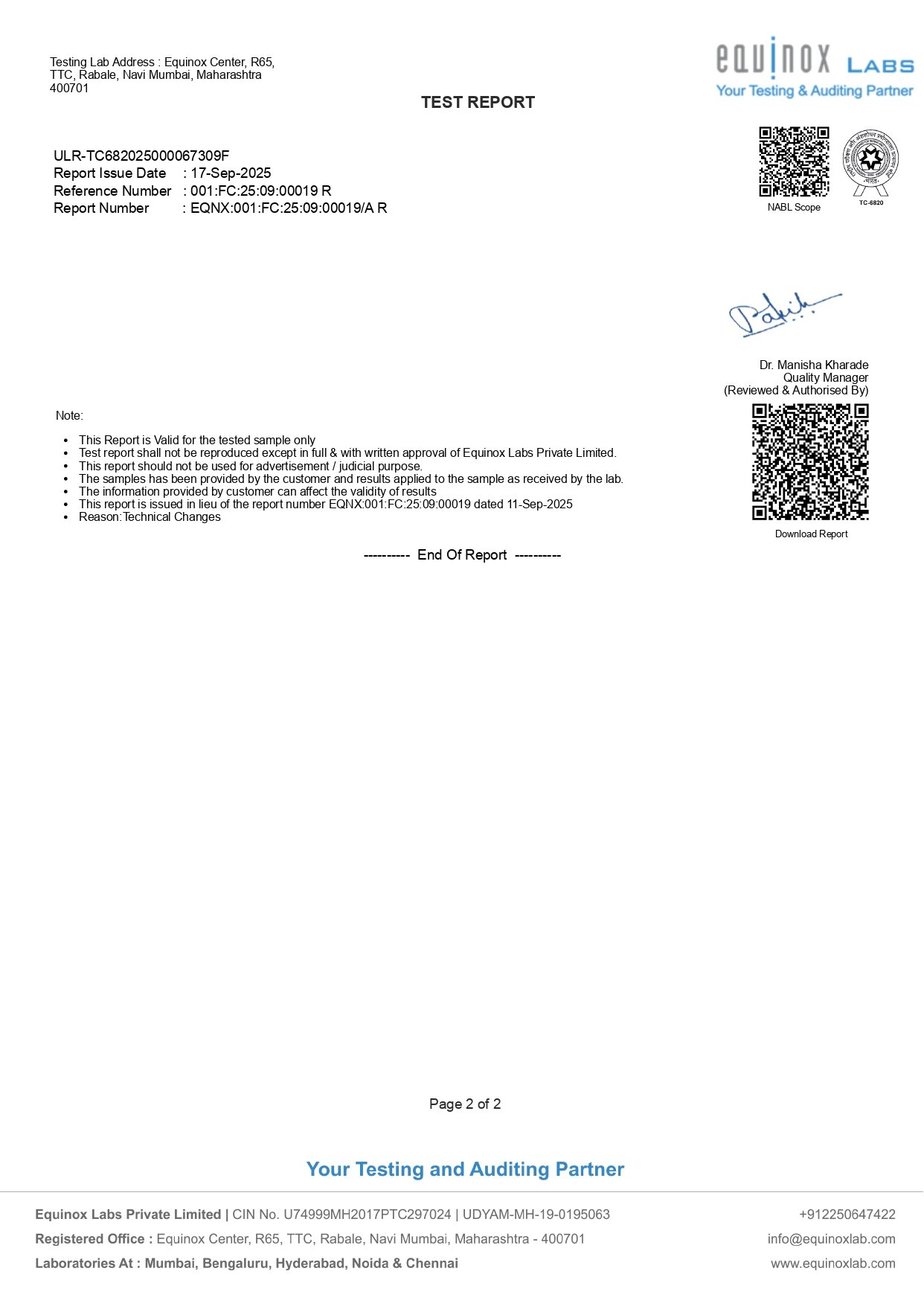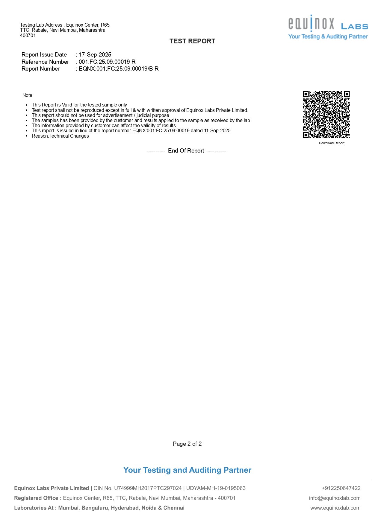 - Lab-tested and certified by FSSAI, HACCP, ISO 9001:2015, and GMP