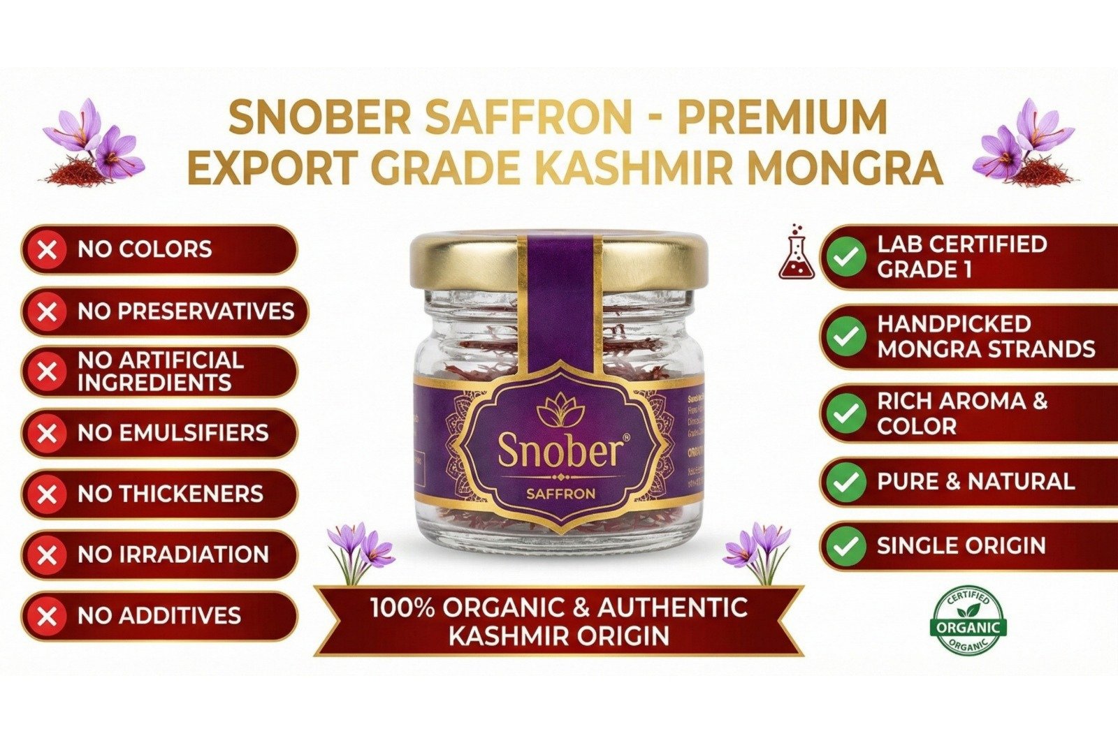 - Premium Purity: Snober Saffron undergoes rigorous quality control, ensuring every strand is pure, potent, and free of additives.