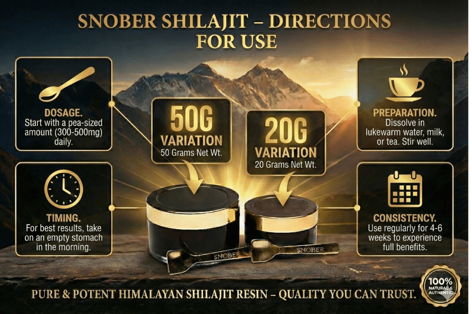 Unlike synthetic energy boosters or mass-produced supplements, Snober Pure Himalayan Shilajit delivers sustained energy, natural strength, and holistic wellness – a true legacy of Ayurvedic excellence.